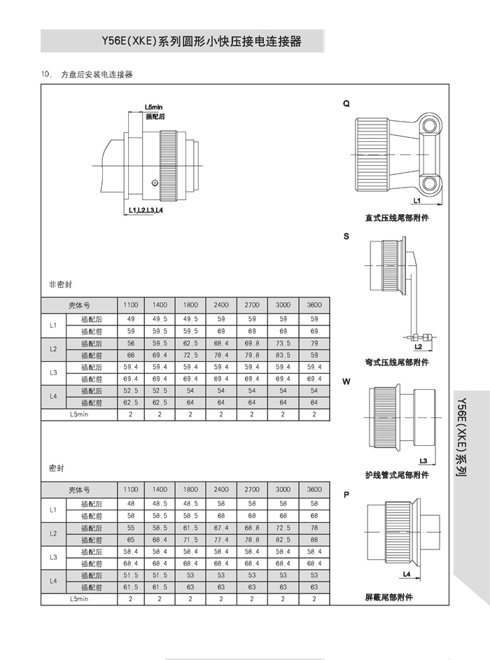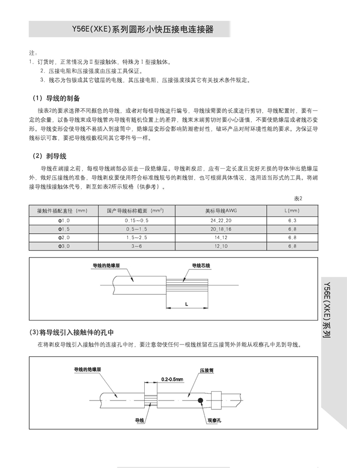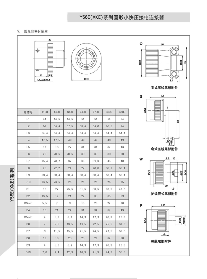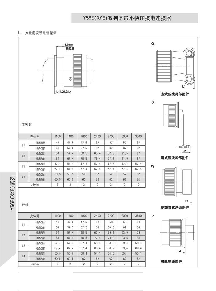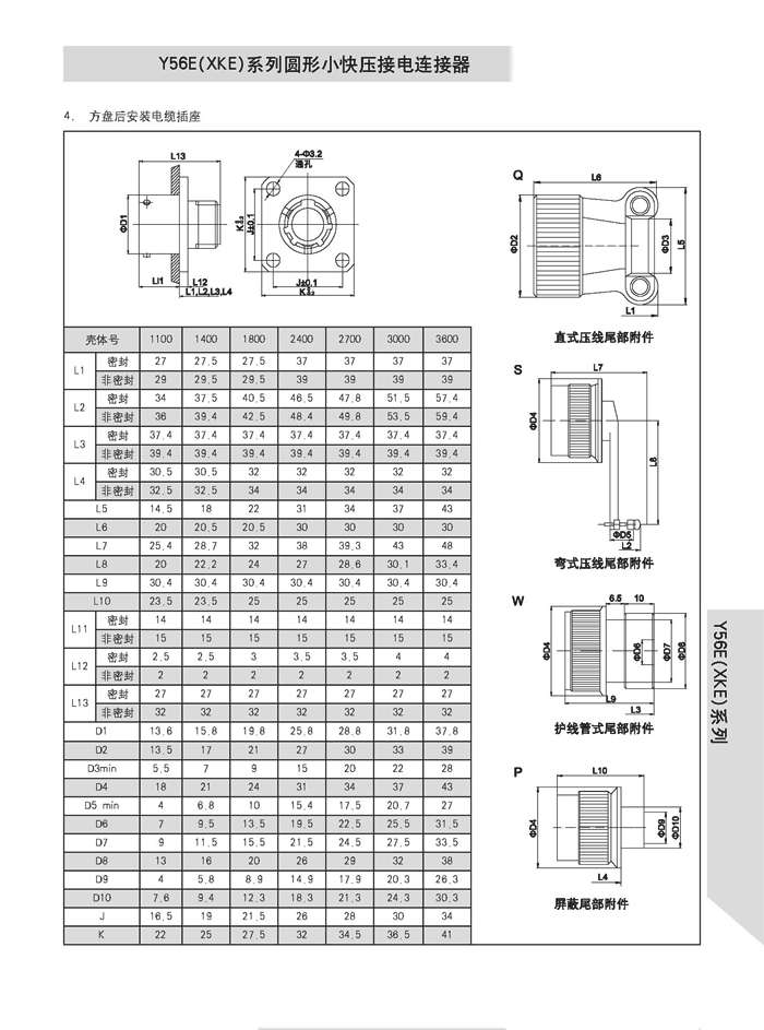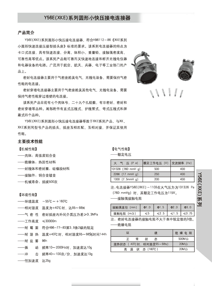 XKE圓形壓接式航空插頭,符合HB6112-86《XKE系列小圓形快速連接壓接型插頭座》標準的要求。該系列航空插頭的特點為卡口式連接,具有快速連接、分離、體積小、重量輕、接觸件密度高,可靠性高等優點.接觸件與導線的連接為壓接端接(密封插座接觸件與導線的連接為焊接端接),接觸件可單個取出或送入,為后松后取式.該系列航空插頭有7個殼體,29個孔組,有密封,非密封品種.尾部附件有直式壓線,彎式壓線,護線管式,屏蔽式四個品種.產品具有可靠而又快速地連接和斷開無線電儀器和電器設備電路的特點.