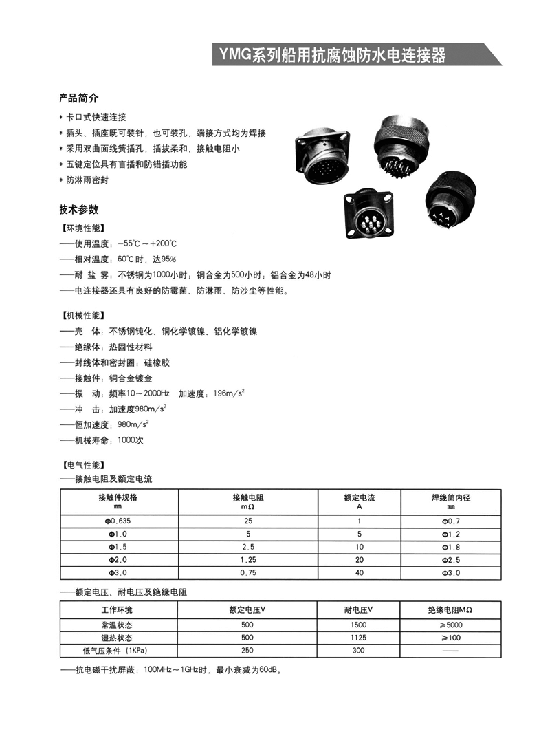 適用于濕熱環境,可耐1000小時鹽霧試驗:卡口式快速連接,插頭插座均為焊接。