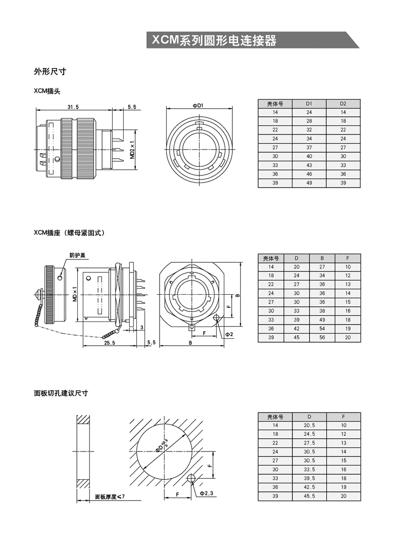 XCM系列螺母拼緊式航空插座: