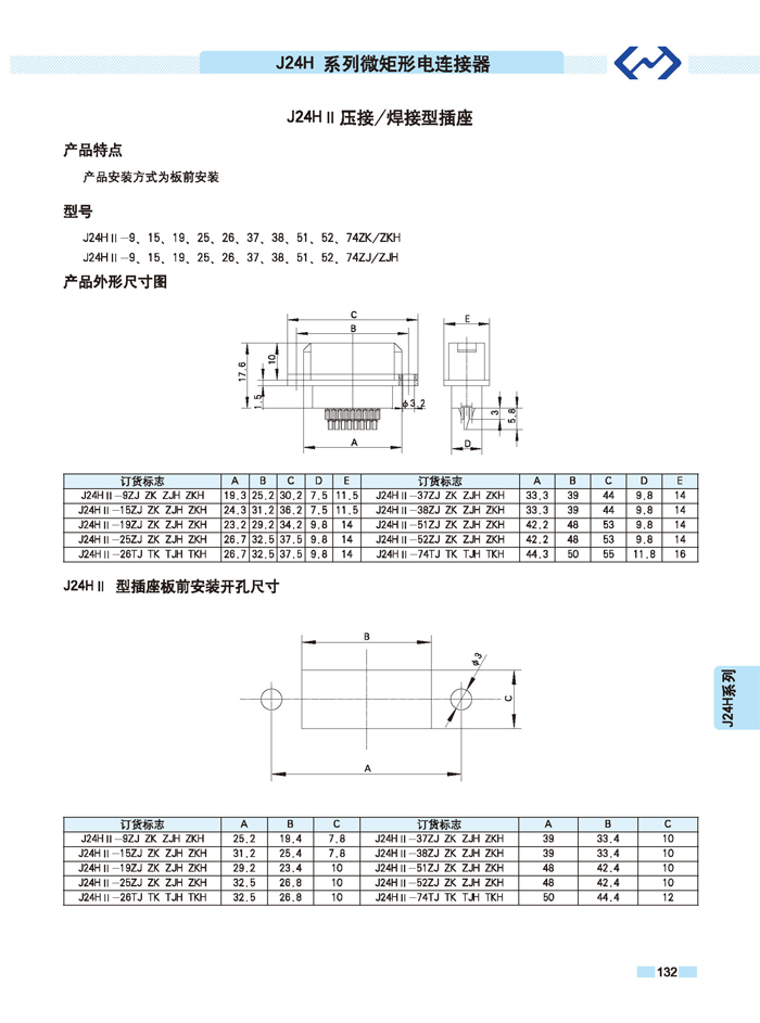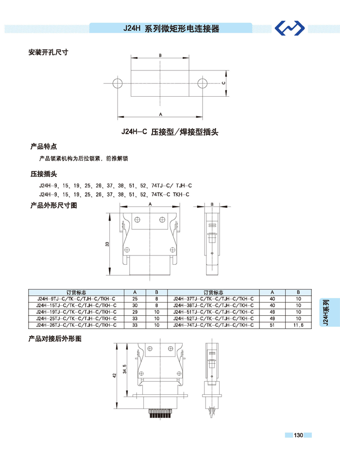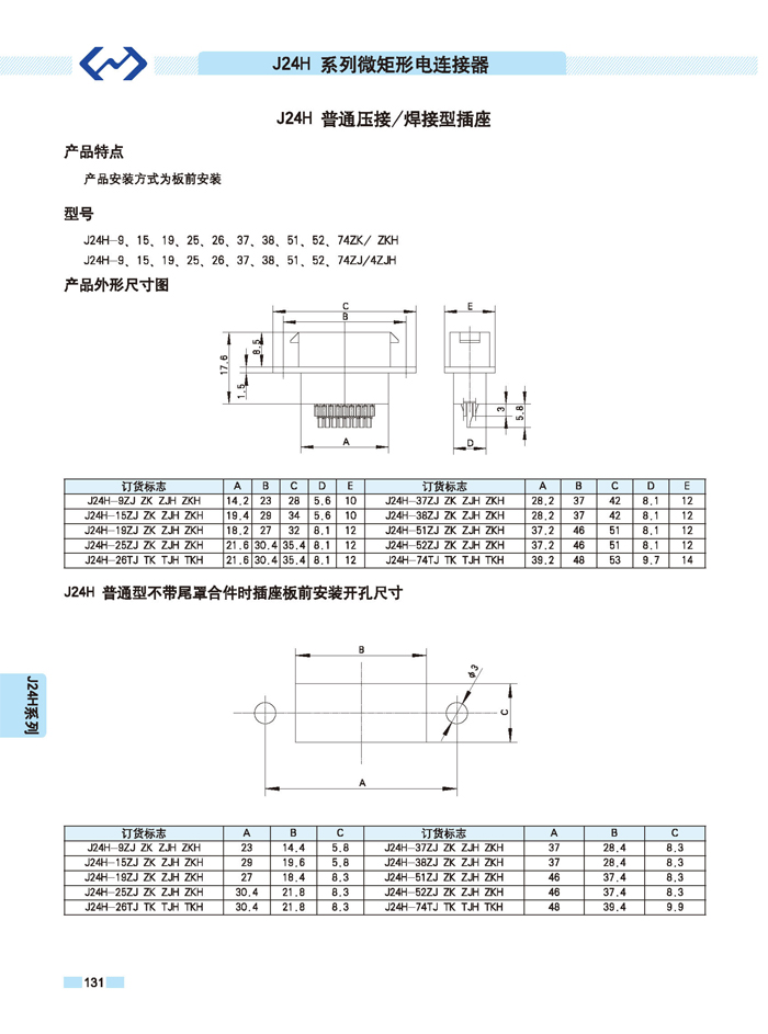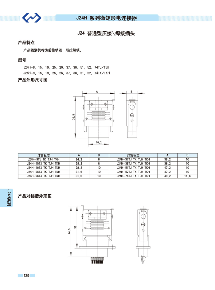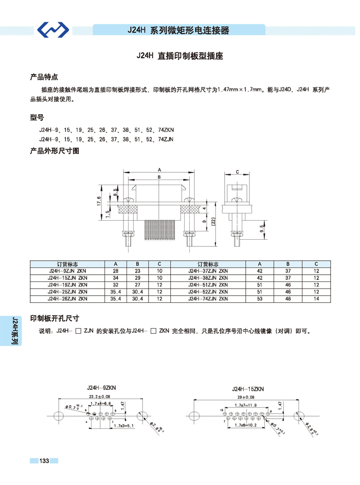 J24H系列微矩形航空插頭座:
