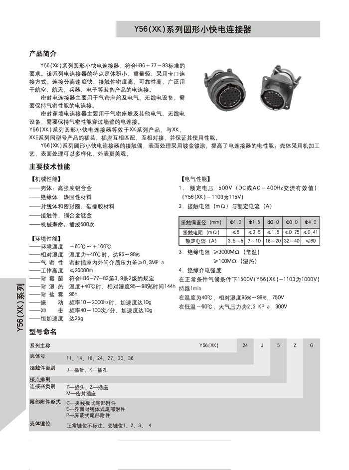 XK圓形航空電連接器,符合HB6-77-83標準的要求,體積小,重量輕,采用卡口連接方式,連接分離速度快,接觸件密度高,與XKE系列同等型號產品互相匹配,相互對接。廣泛用于航空、航天、兵器、電子等裝備產品的電連接。