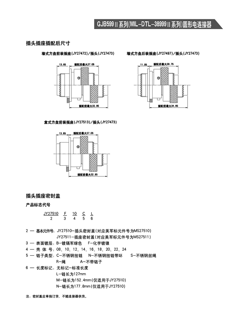 - GJB599I系列圓形航空插頭(MIL-DTL-3899)