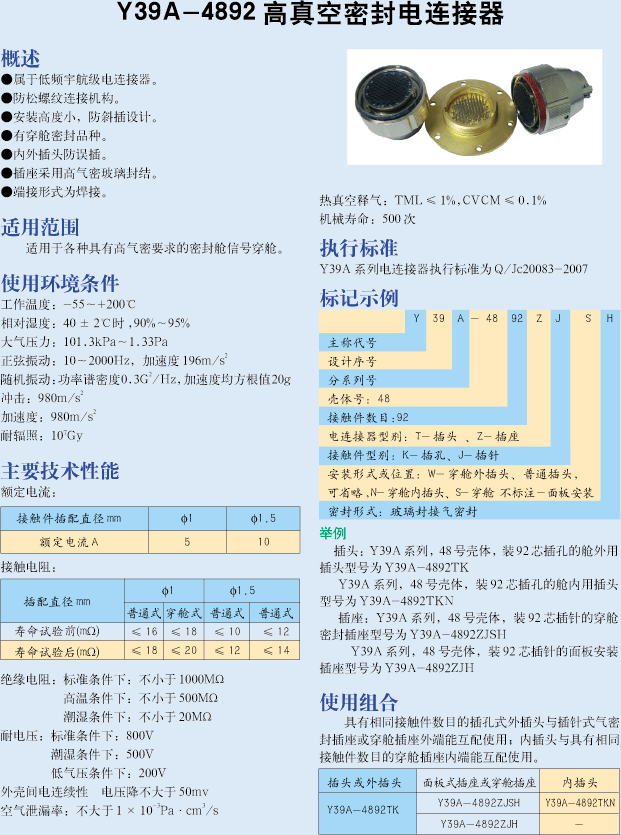 - Y50X系列圓形航空插頭(GJB598A-96)