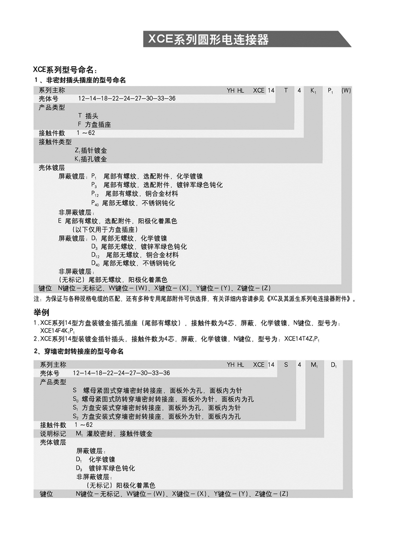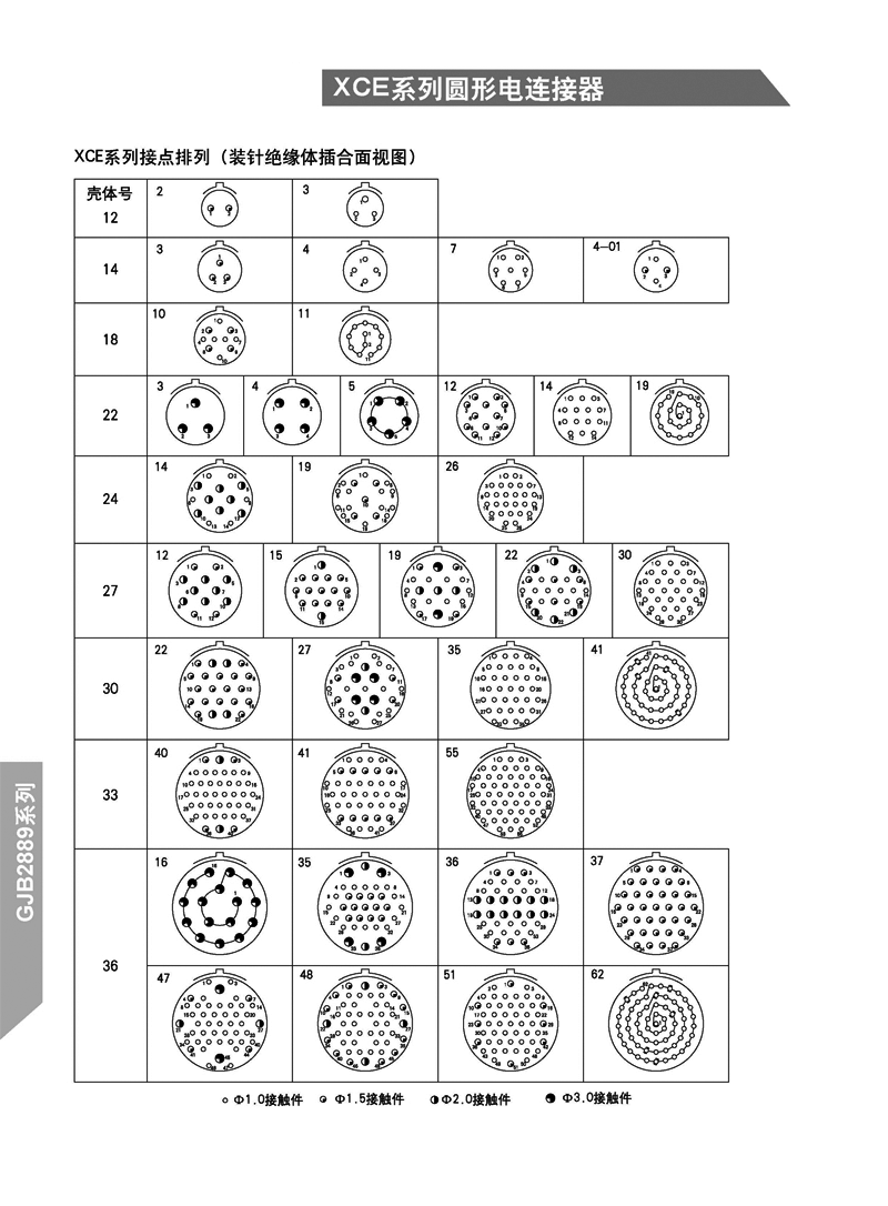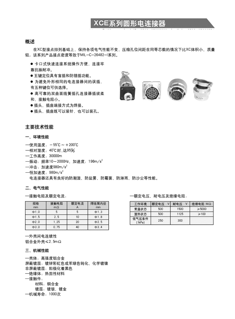 XCE系列軍用圓形電連接器,是在XC型譜排列基礎上,壓縮接點排列孔位間距,在相同接觸對數下比XC體積小,重量輕,殼體為高強度鋁合金材料,插頭、插座既可裝針也可裝孔,其連接方式為卡口式快速連接和分離,操作方便,連接可靠,抗振耐沖,接觸件有焊接式,其中插孔為線簧孔,具有插拔柔和、接觸電阻小、防潮、防鹽霧、防霉菌、防淋雨等特性,主要應用于艦船等各種惡劣環(huán)境領域,也可應用于航空、航天、兵器、野戰(zhàn)通信等軍事領域以及郵電通訊、鐵路指揮系統(tǒng)、計算機、航海和各種儀器、儀表的線路連接。